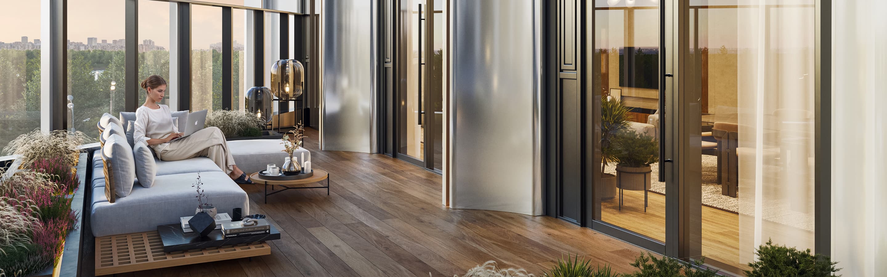 Самая верхняя точка башен. И по этажу, и по ощущениям. Пентхаусы в ÁLIA ALIVE — это не просто площадь и план. Это редкость, приватность, обзор на 360° и атмосфера уединенного «выше города».